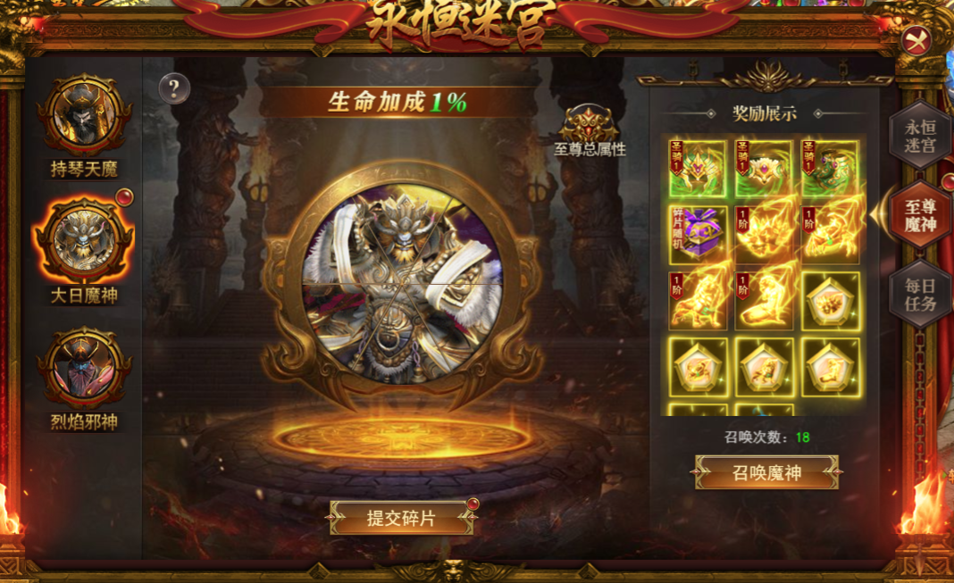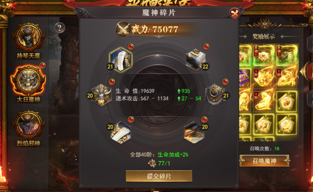 4.每个魔神6个部位等级+1,可以获得1次魔神召唤次数