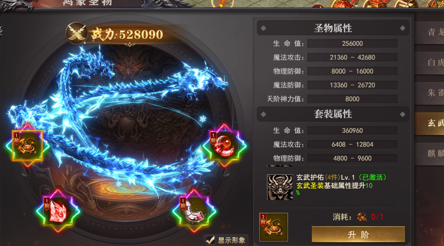 (1)玄武圣装/圣物:开服时间达到260天