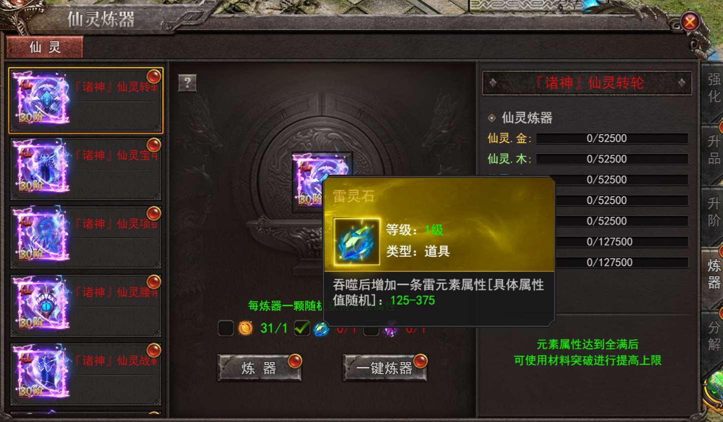 (1)雷灵石:吞噬后增加一条雷元素属性(属性值随机)