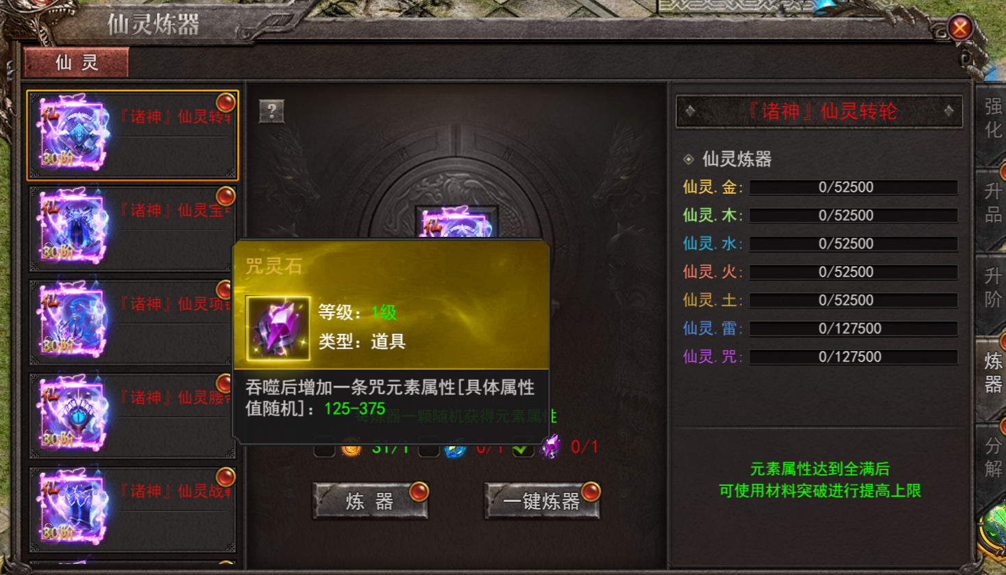 (2)咒灵石:吞噬后增加一条咒元素属性(属性值随机)