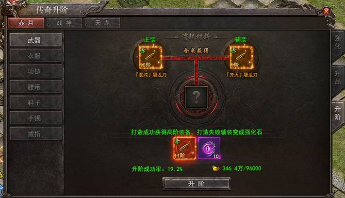 2、优化传奇装备升品操作,增加一键升品功能,一键功能为逐一合成,点击后等待合成即可