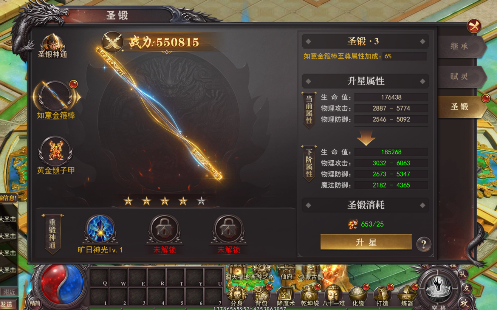 (1)需要消耗如意金箍棒碎片/黄金锁子甲碎片进行升星,每五星为一阶