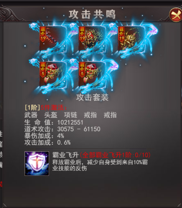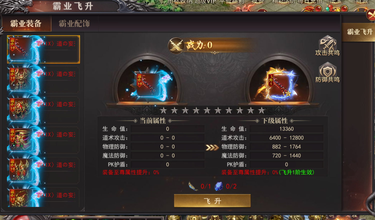 (1)需要使用霸业装备+霸业飞升石进行装备飞升