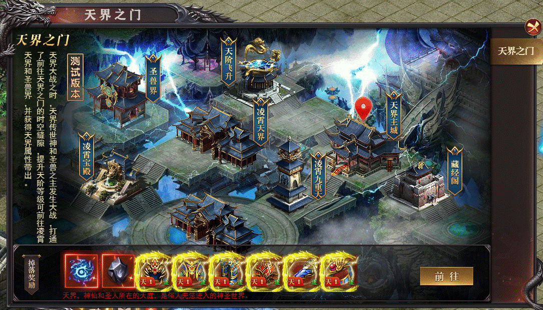 主城包含:天阶飞升、装备飞仙、魂器、圣兽界和藏经阁(藏经阁暂未开放)