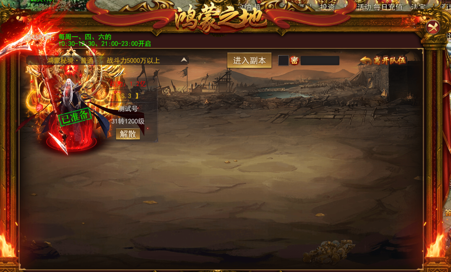 (1)鸿蒙幻境:开服161天开启(鸿蒙圣境—敬请期待)