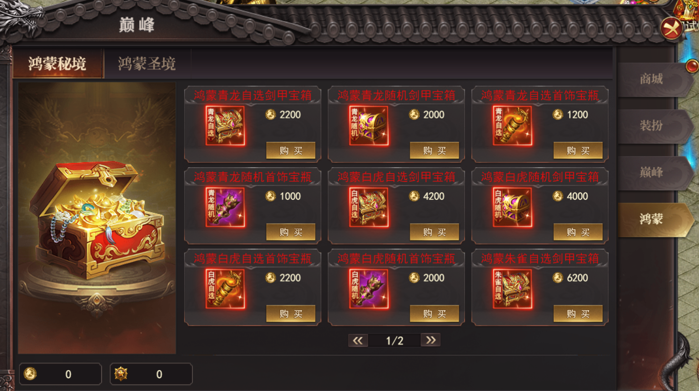 鸿蒙仙级勋章/鸿蒙圣级勋章:商城可兑换对应的青龙装备