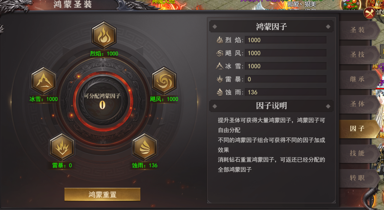 (3)消耗钻石重置鸿蒙因子,可返还已经分配的全部鸿蒙因子