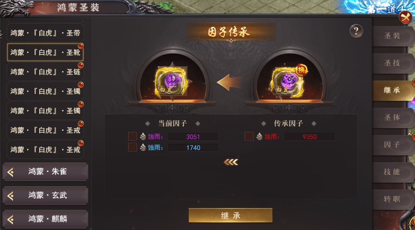 (1)可通过继承把鸿蒙因子转移到同阶的另一件装备上