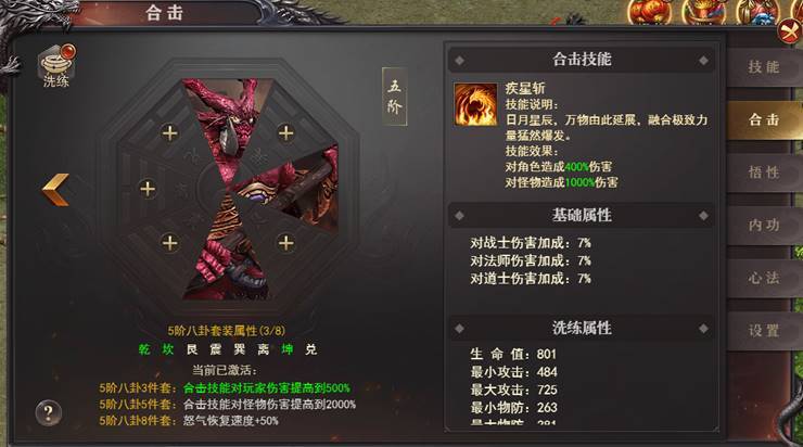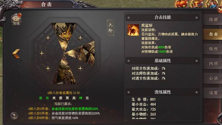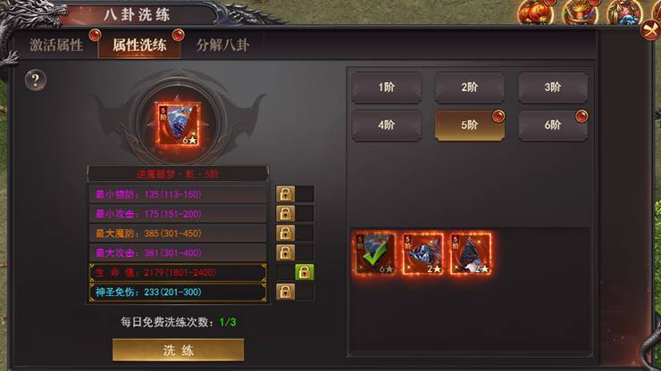 2、 所有阶数的八卦都可进行洗练,洗练属性都可叠加
