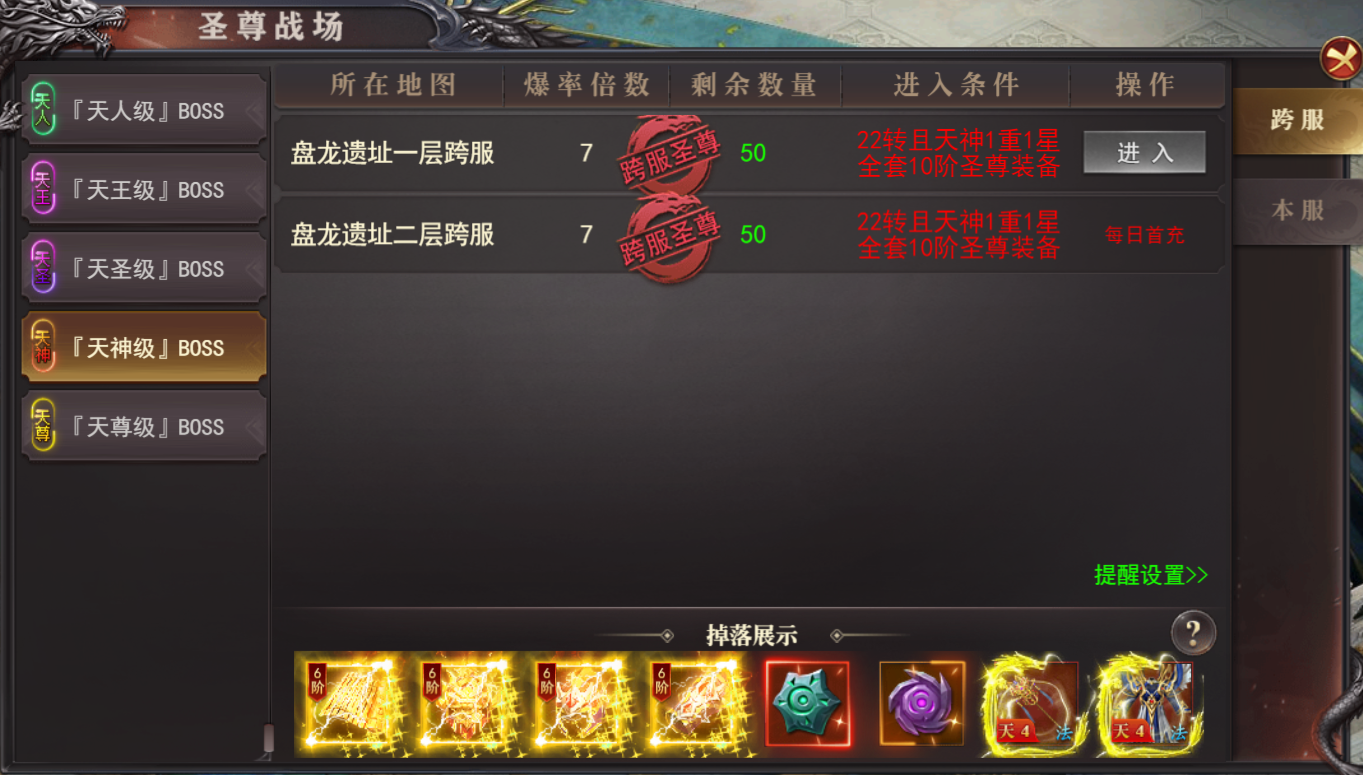 (1)达到对应圣尊装备穿戴等阶方可进入