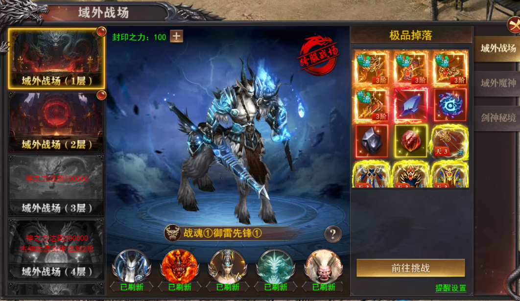 ④击杀域外战场的BOSS需要消耗封印之力,封印之力每日拥有100点,次日0点重置