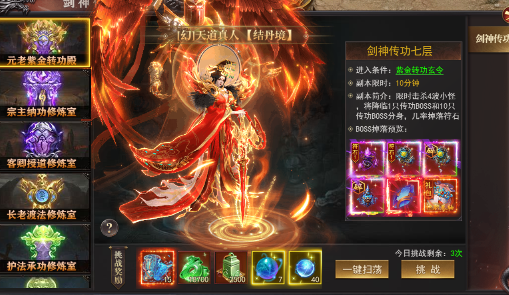 ①通过激活传功令牌可进入不同的修炼室,修炼室越高级,奖励越好