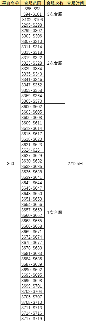 为保证服务器的运行稳定和服务质量,《百战沙城》部分区服将于2021年2月25日上午08:30后停机,进行相关合服工作。预计合服时间为上午08:30至09:30。请各位玩家相互转告,并提前留意游戏时间,以免造成不必要的损失。对于合服期间给您带来的不便,敬请谅解,360游戏感谢所有玩家的支持和配合。