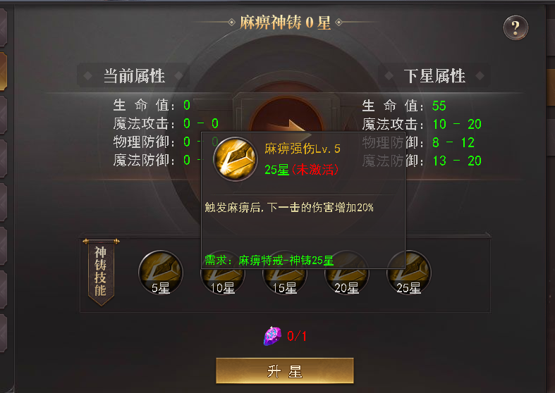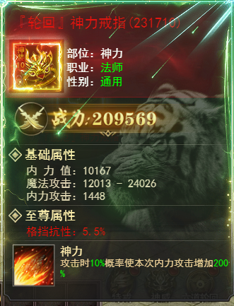 神力特戒:攻击时10%概率触发多倍内功攻击,升级提升内功攻击倍率