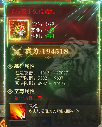 忽视特戒:攻击时忽视敌方物防魔防百分比,升级提升百分比