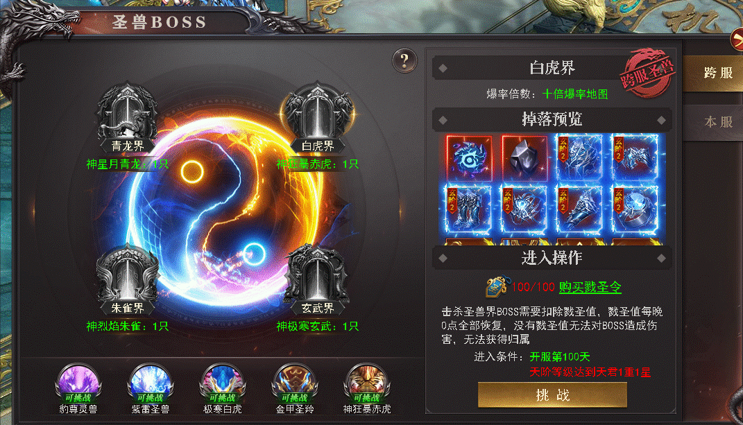 3、圣兽界每层包含一只终极boss,爆率为该圣兽界最高boss