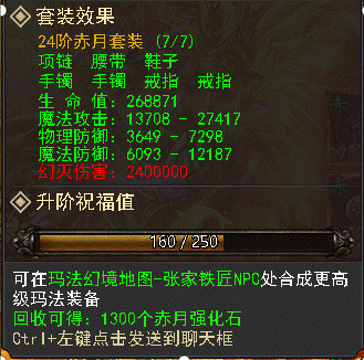 1、更新维护后,玛法幻境赤月套装除武器衣服附加幻灭伤害外,首饰套装也将附加幻灭伤害,套装等级越高,幻灭伤害越高,助力玛法加速
