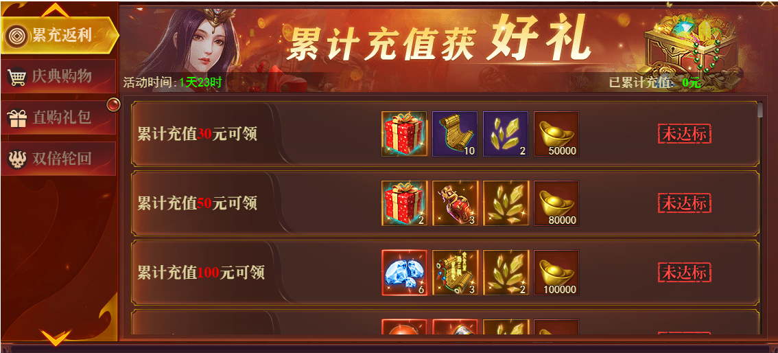 活动期间每日累计充值达到指定金额可领好礼,最高奖励5星神器自选宝箱