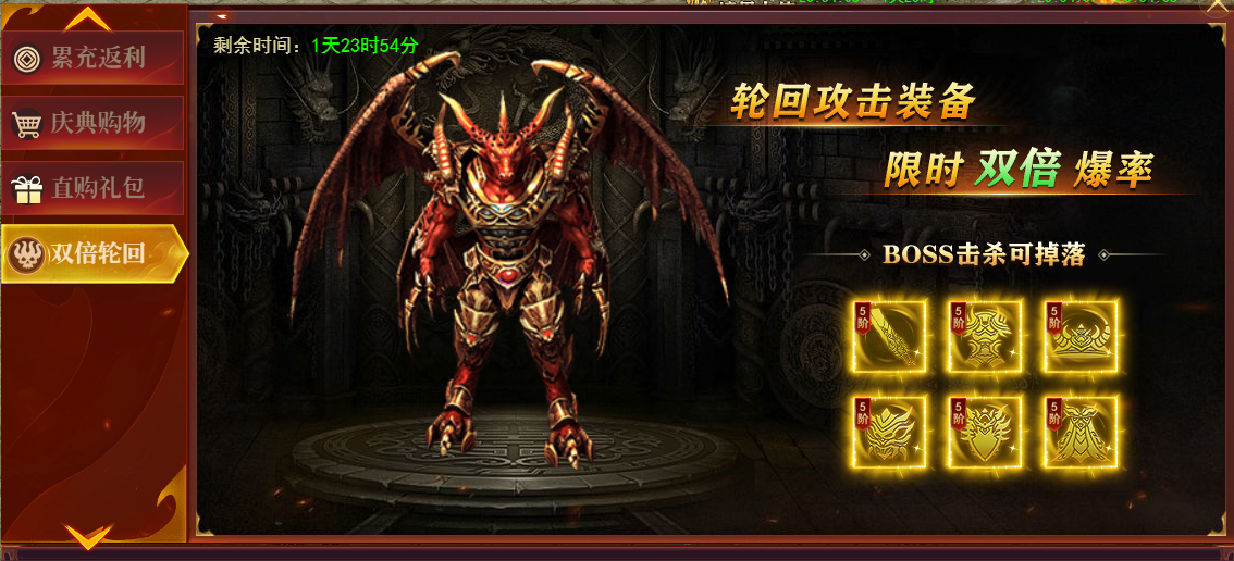 活动期间击杀轮回BOSS,轮回攻击装备限时双倍爆率