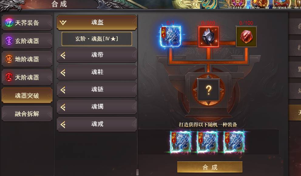 玄阶●魂盔[Ⅳ★]+魂之结晶+神魔天石