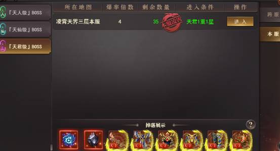 (1).本服存在三层,最低一层需达到天人1重10星才可进入;